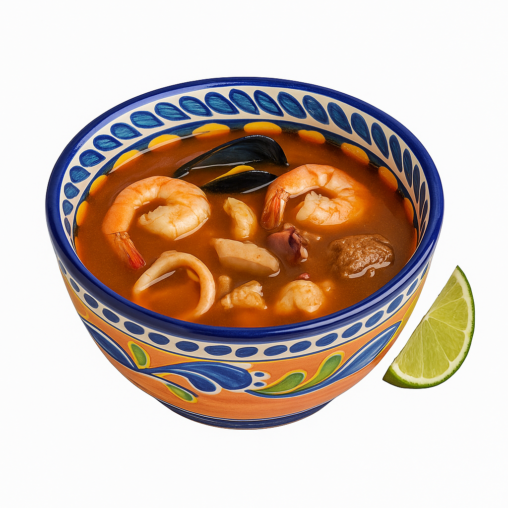 Whole shrimp octopus and green muscle cooked with garlic butter onion jalapeno and green onion with rice refried beans lettuce pico de gallo sour cream and guacamole with your choice of flour or corn tortillas.