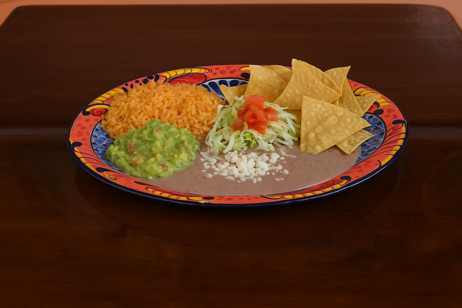 Rice whole beans sour cream and your choice of meat covered with our homemade mole sauce.
