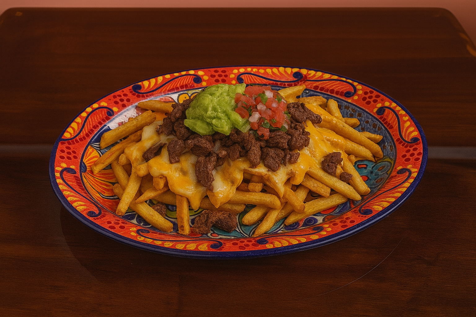 Your choice of meat with French fries cheese sour cream pico de gallo and guacamole.