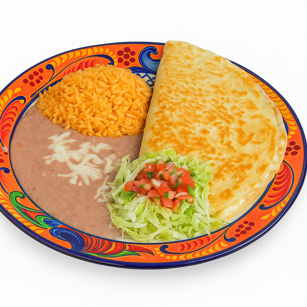 10” Flour Tortilla with cheese and your choice of meat and lettuce guacamole pico de gallo and sour cream